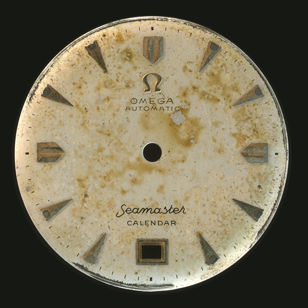Las esferas de los relojes tras muchos años de uso y exposición, pueden deteriorarse y pierden su esplendor como consecuencia de la alteración de los barnices que la protegen así como la alteración de los baños galvanotécnicos, las lacas y esmaltes. Este es el claro ejemplo de una esfera con aproximadamente 70 años de vida que ha sido alterado el baño de plata de la superficie del dial posiblemente por las inclemencias del tiempo, rayos ultravioletas que han incidido sobre su superficie, etc., etc.