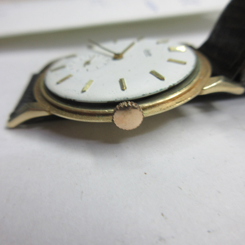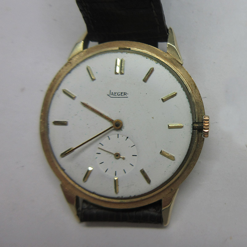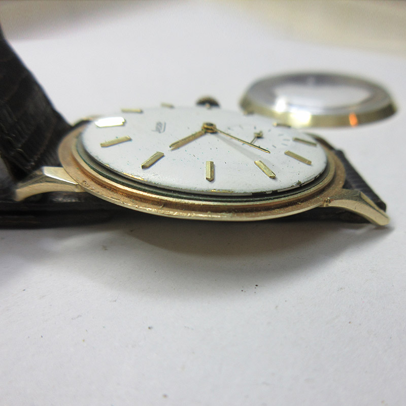 El reloj nos fue entregado con claros signos del paso del tiempo: la caja desgastada, el cristal opaco y una esfera marcadamente deteriorada y mal restaurada hasta el punto de que fue remarcada con la marca Jaeger en vez de LeCoultre y, con el color de fondo blanco esmaltado en vez del color original que en su día fue plateado… además de una maquinaria que no funcionaba.