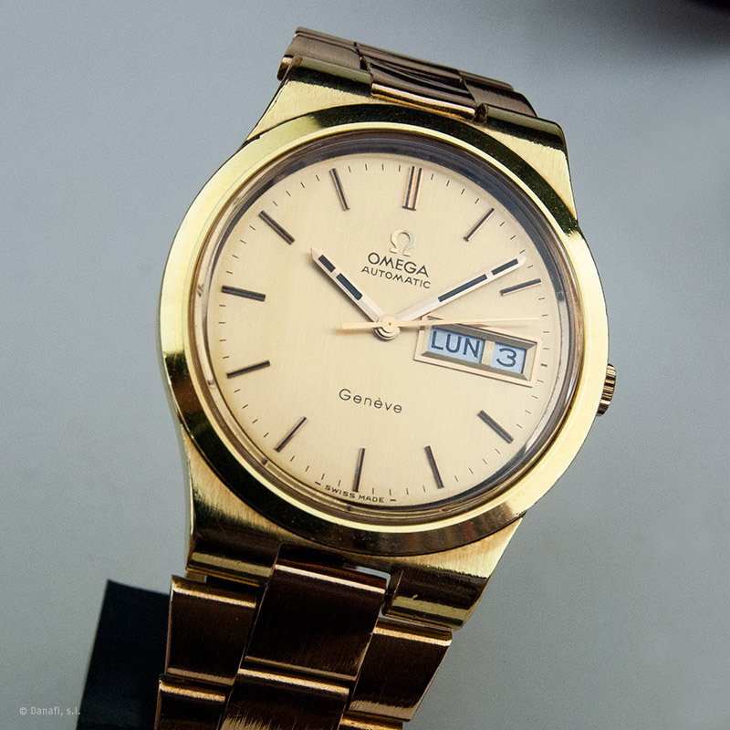 Estamos orgullosos de poderos presentar la recuperación de un reloj Omega automático Genève provisto de un calibre 1022. Se trata de un reloj con caja y armis (brazalete) metálico y chapado en oro. Hemos podido realzar todos los componentes del reloj, desde la esfera, la caja, armis, cristal plexiglás y agujas. Finalmente le hemos realizado un servicio de mantenimiento y puesta a punto a la maquinaria.